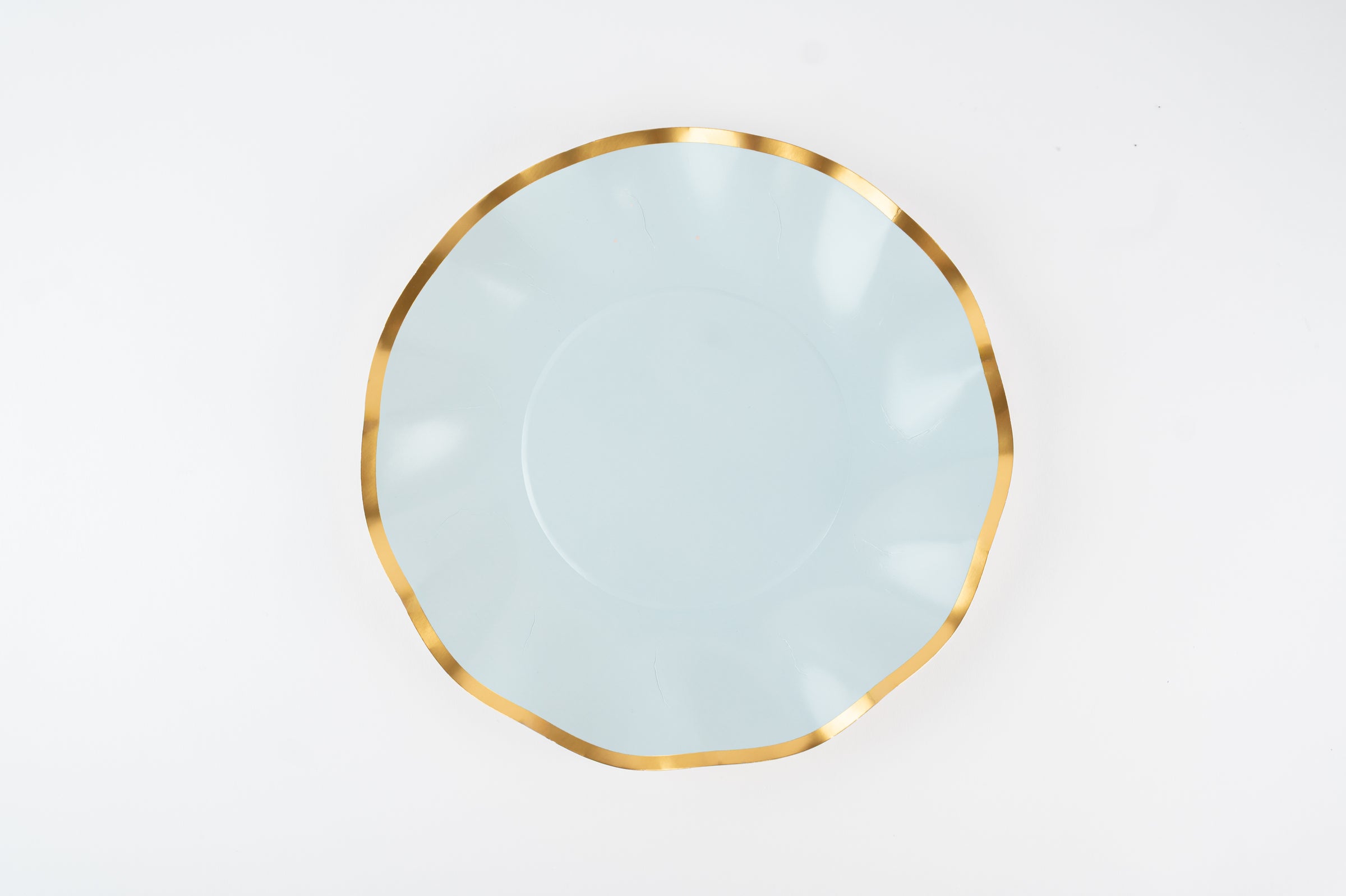 Bring soft elegance to your table with the Scallop Luxe Dinner Plate – Blue Fog. Designed in a delicate baby blue tone and finished with a luxurious gold foil rim, this dinner plate features a graceful scalloped edge that elevates any celebration. Perfect for main courses, statement table settings, and refined gatherings, it adds a timeless yet modern touch to birthdays, baby showers, and chic soirées.